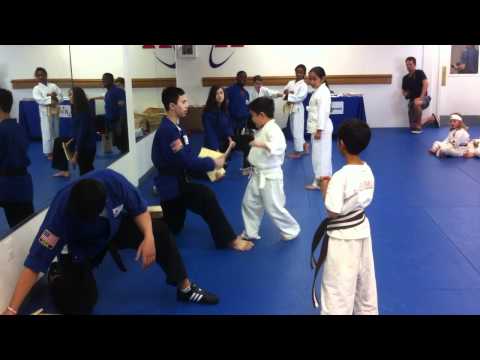 祐祐通過空手道金帶晉級考試。壓軸好戲是踢破木板。他第一腳就成功,非常得意。
